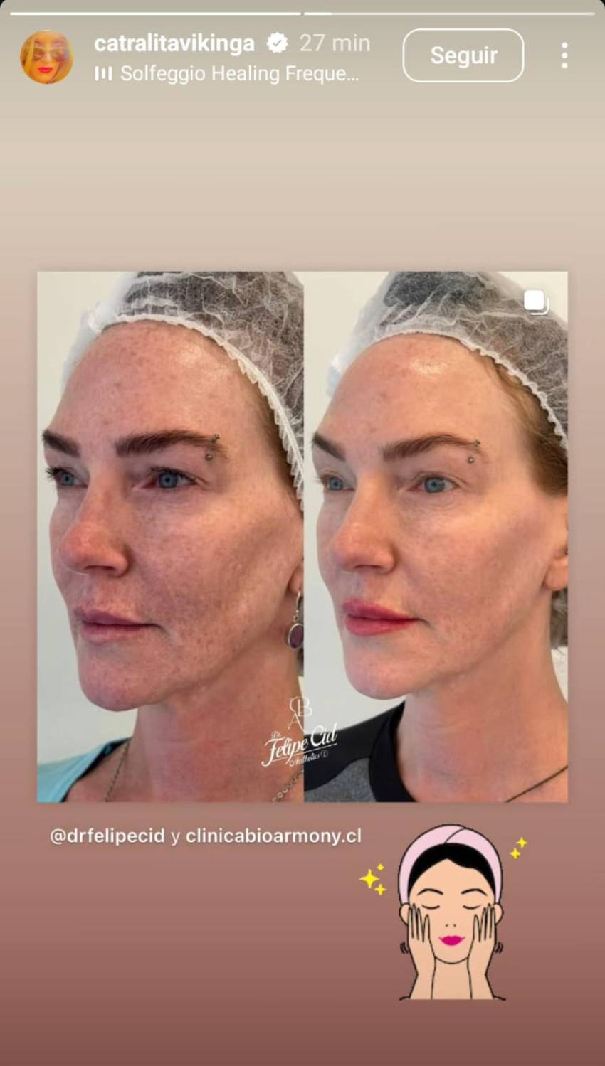 Catalina Pulido exhibió los resultados de su tratamiento a través de sus historias en Instagram, donde publicó varias fotos de cómo lucía su piel antes y después. "Una imagen vale más que mil palabras", escribió en su post.