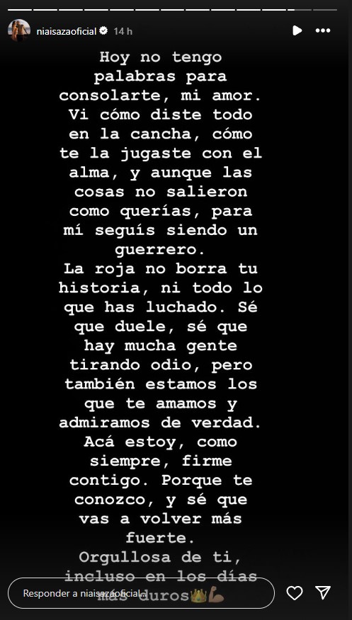 Finalmente, la modelo fitness le declaró todo su amor y apoyo incondicional: "Acá estoy, como siempre, firme contigo. Te conozco y sé que vas a volver más fuerte. Orgullosa de ti, incluso en los días más duros".