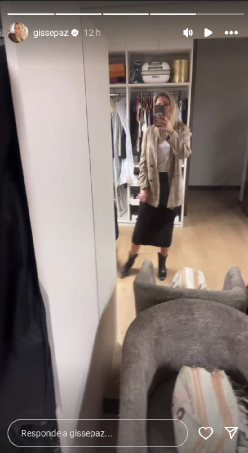 Todo ocurrió en una historia de Instagram, donde la influencer hablaba sobre su larga jornada de trabajo y compartía frente al espejo su look del día, mientras grababa con su celular en la mano.