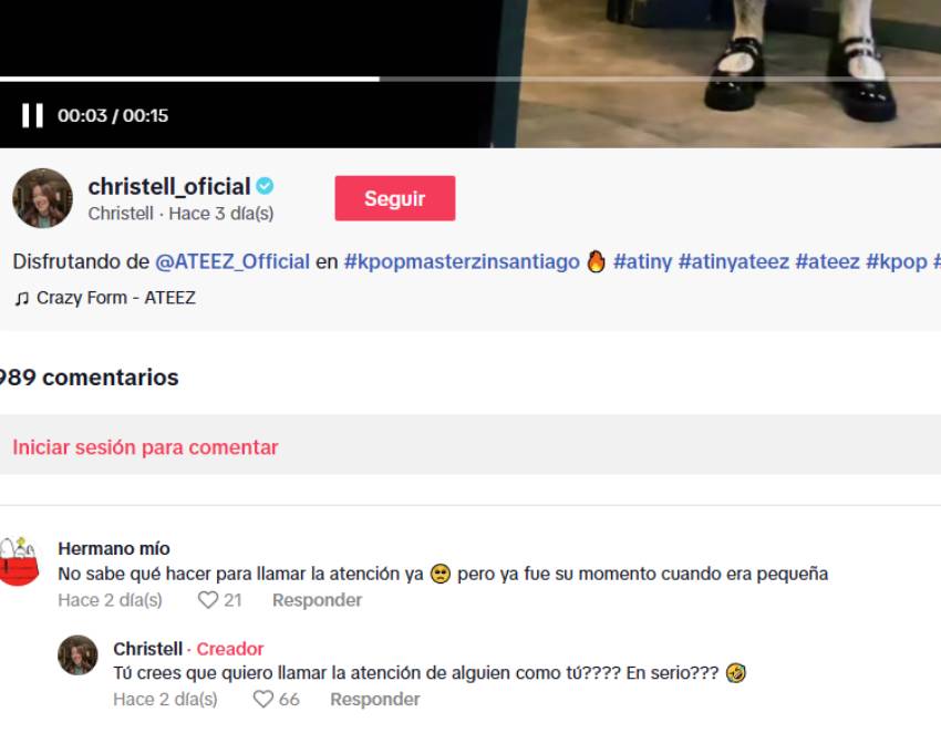 Fue en un baile compartido en TikTok, donde el atuendo de Christell recibió varios comentarios negativos, como “qué cringe me dio”, “¿de qué se disfrazó?”, “no sabe qué hacer para llamar la atención, pero ya fue su momento cuando era pequeña”.