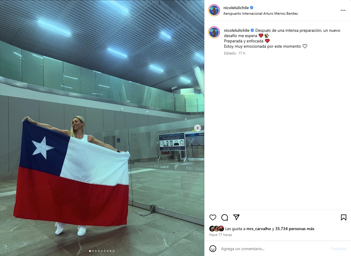 Más tarde, un portal de noticia reveló cual es el motivo por el que Nicole Moreno viajará fuera de Chile: "Viajó hasta Panamá para representar a nuestro país en torneo fitness".