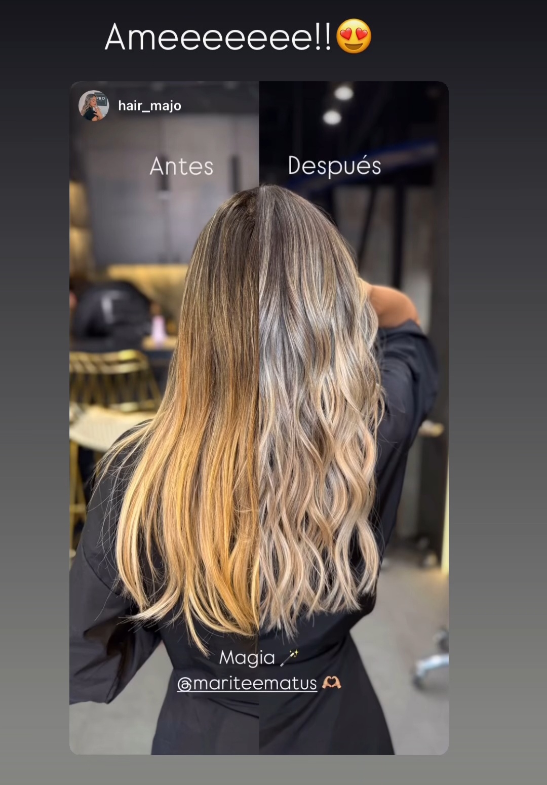 En sus historias de Instagram, regaló una fotografía en la que mostró el impactante antes y después, pasando de unas hebras con color oxidado a la magia de un matiz fresco y con mucho estilo.