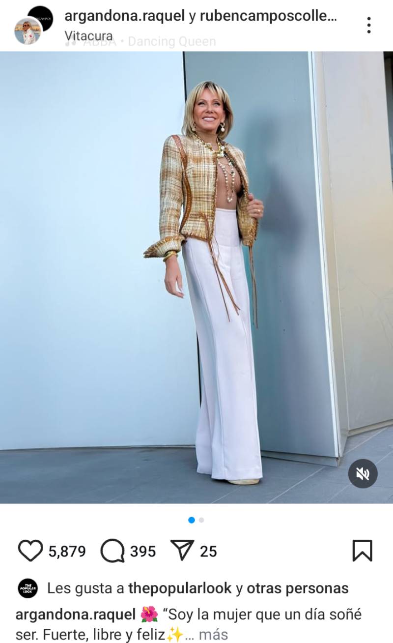 “Soy la mujer que un día soñé ser. Fuerte, libre y feliz”, escribió Argandoña en su publicación, en la que compartió fotos de su creativo atuendo.