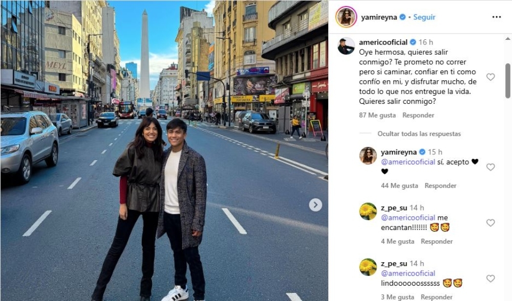 “Oye hermosa, ¿quieres salir conmigo? Te prometo no correr, pero sí caminar; confiar en ti como confío en mí, y disfrutar mucho de todo lo que nos entregue la vida”, comentó Américo en la publicación de su polola.