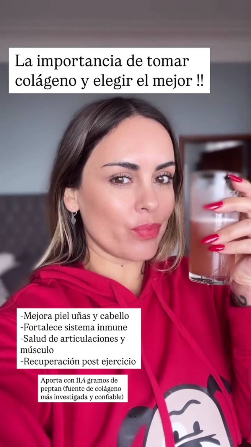 La influencer explicó que este mejora la apariencia de la piel, uñas y cabello, dejándolos más fuertes. También resaltó su capacidad para fortalecer el sistema inmune, mejorar la salud de músculos y articulaciones, y ayudar en la recuperación post ejercicio.