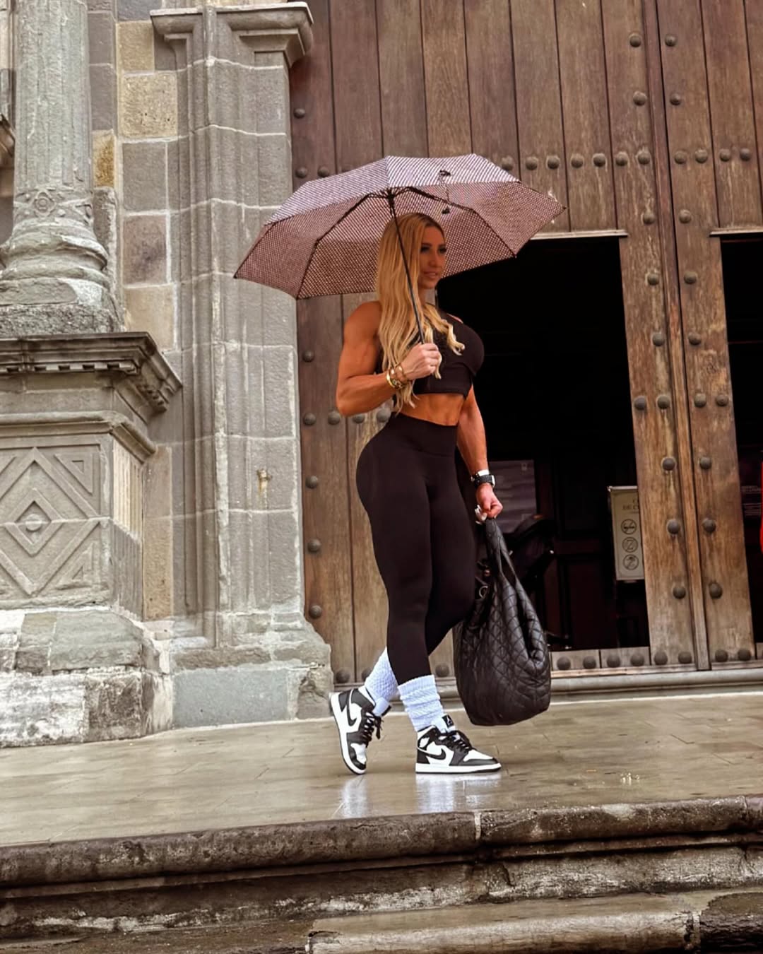 Más que un outfit, Luli Moreno mostró la actitud de una campeona que recibió un reconocimiento a su esfuerzo. Frente a una iglesia en la Ciudad de Panamá, se fotografió con un look deportivo relajado, perfecto para el gimnasio o como street style.