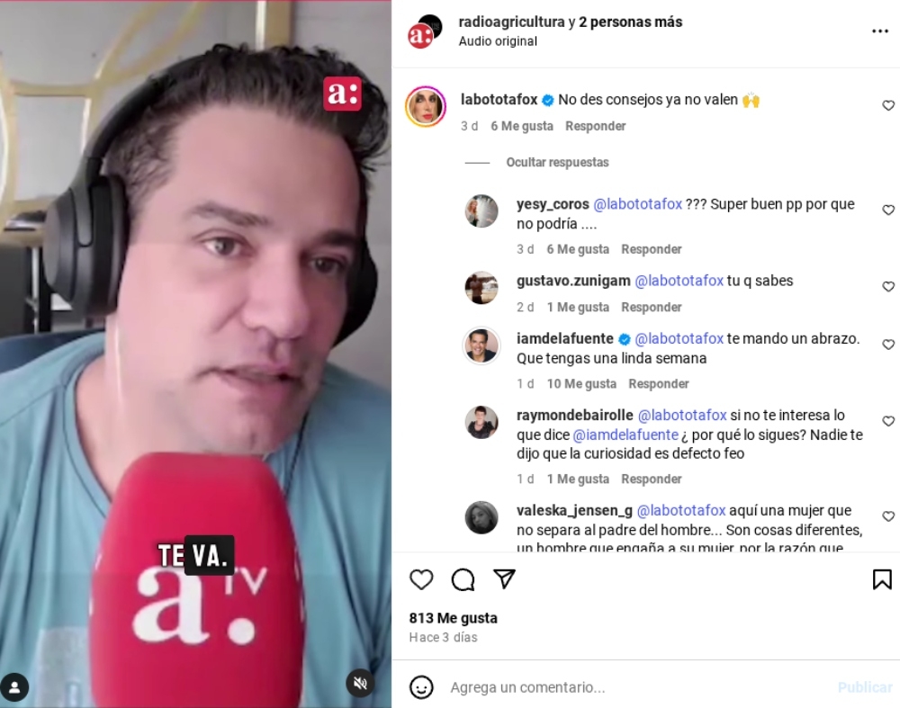 Cristián publicó un extracto del pódcast en el que es panelista, donde resalta la importancia de la cercanía con los hijos. "Esos años que decidiste ser papá, tomaste la responsabilidad de traer un niño o una niña al mundo, tienes que dedicárselos", dice el actor. Botota se fue con todo y comentó en el post: “No des consejos, ya no valen”.