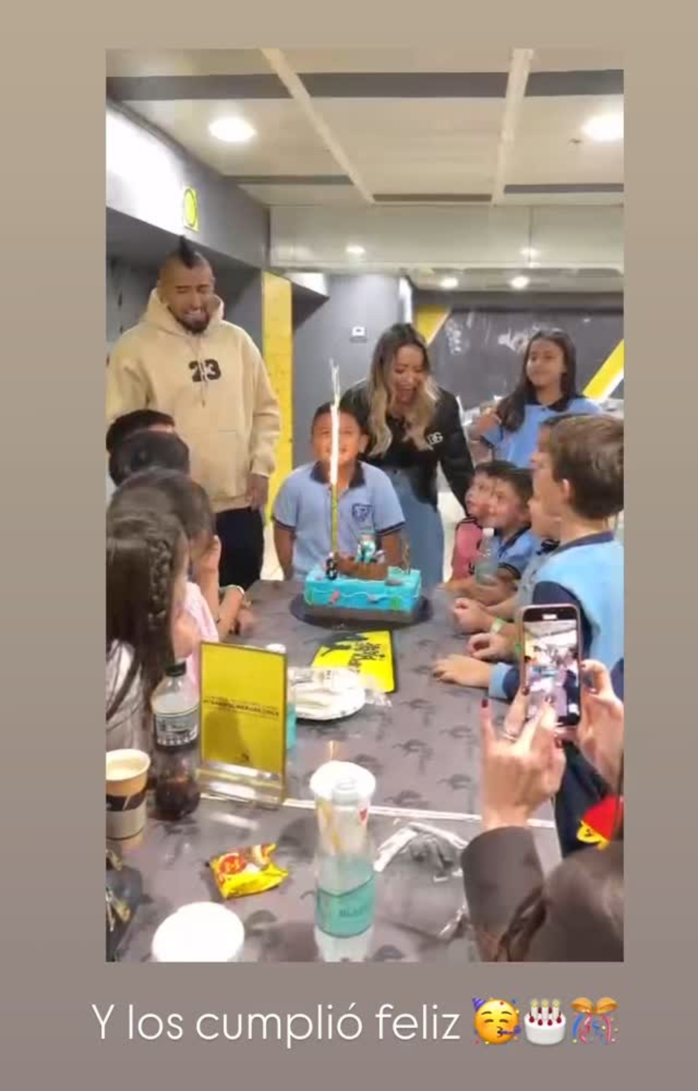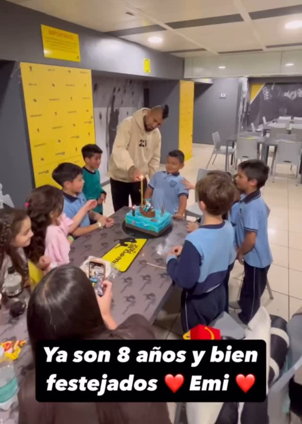 En sus historias de Instagram, el jugador compartió un video de un festejo de su hijo, en el que estuvo acompañado de sus amigos del colegio. “Ya son ocho años y bien festejados, Emi”, escribió Vidal.
