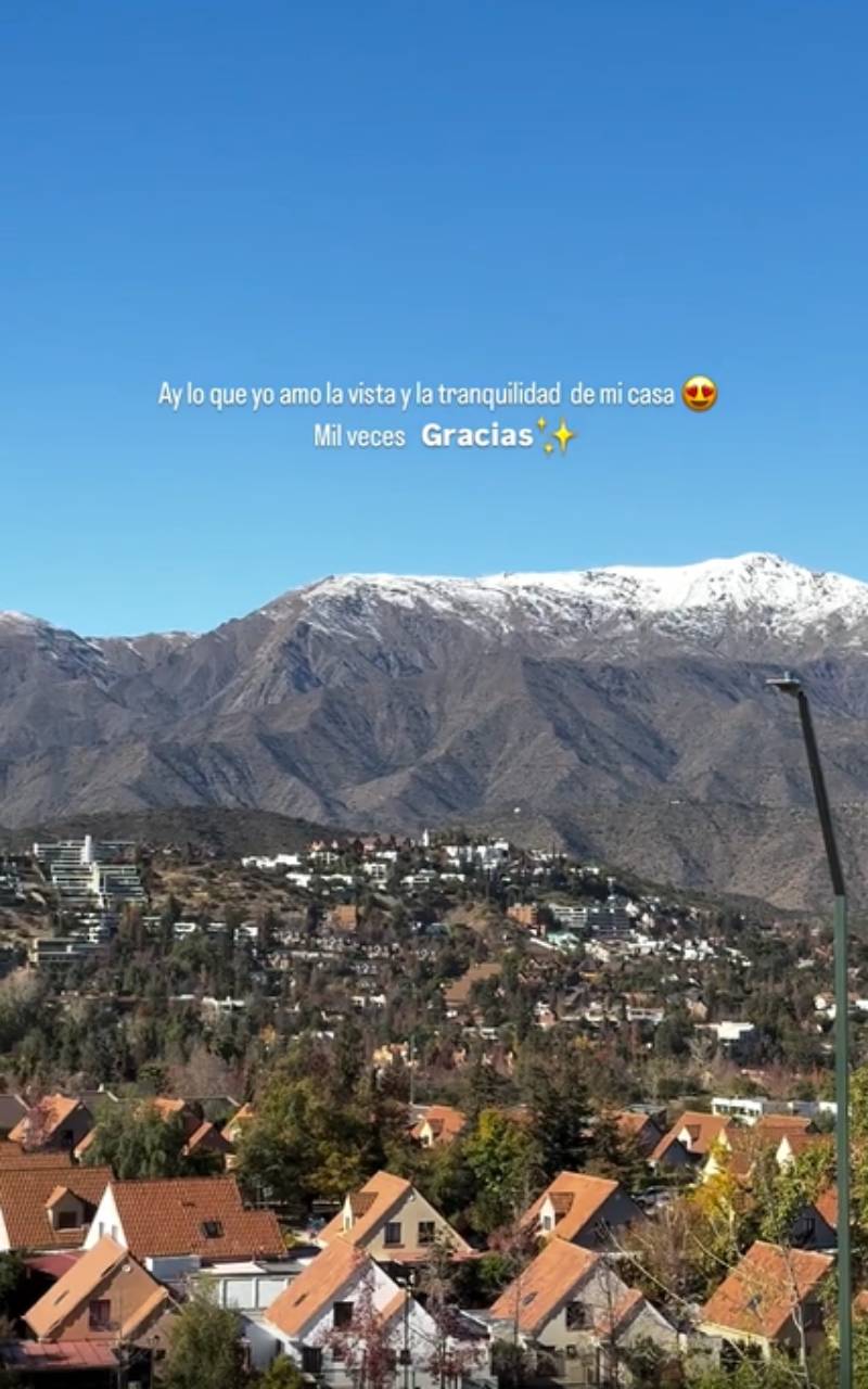 En una historia de Instagram, la modelo y panelista compartió con sus seguidores un video de la hermosa vista a la cordillera que tiene desde la comodidad de su casa.