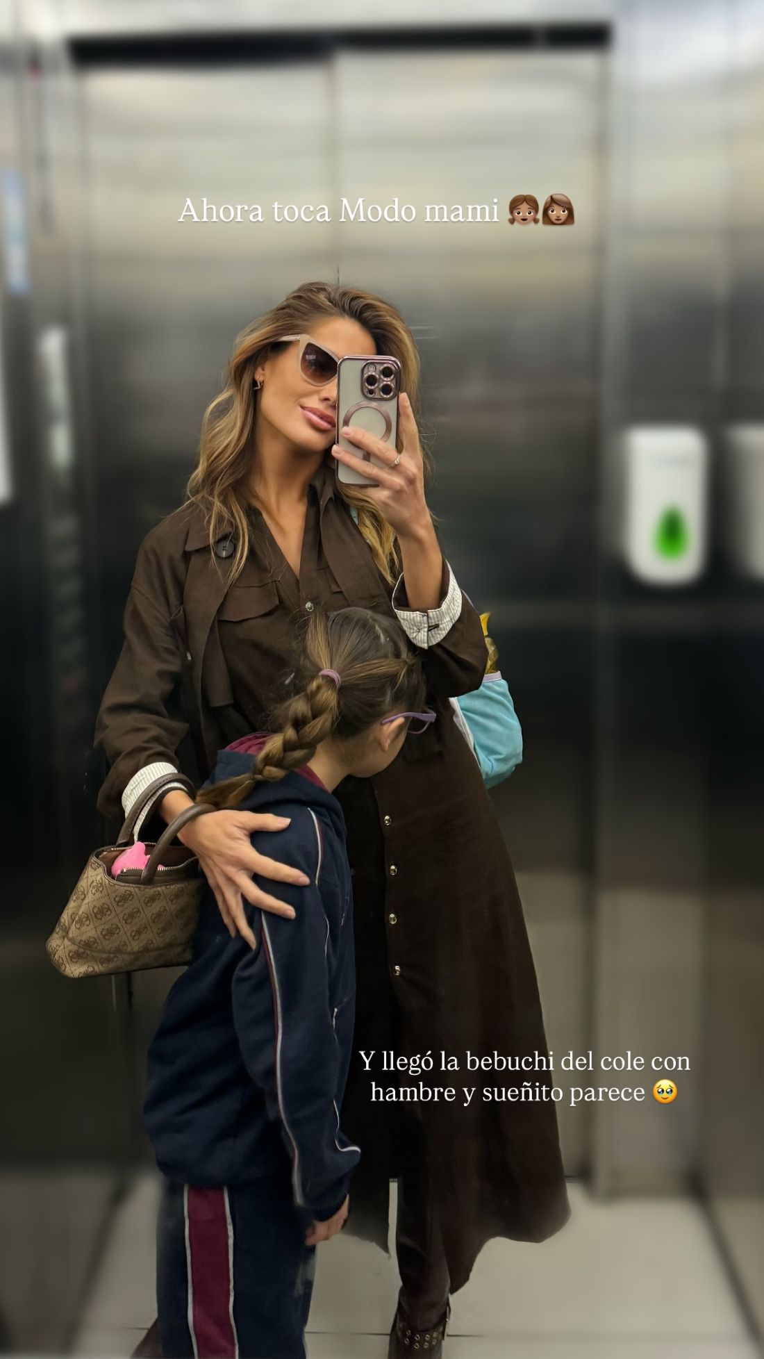 “Con hambre y sueñito”, llegó la hija de Gala y Mauricio Isla a casa. Mientras subían el ascensor, la modelo española dejó constancia de su outfit, compatible con el “modo mami”.