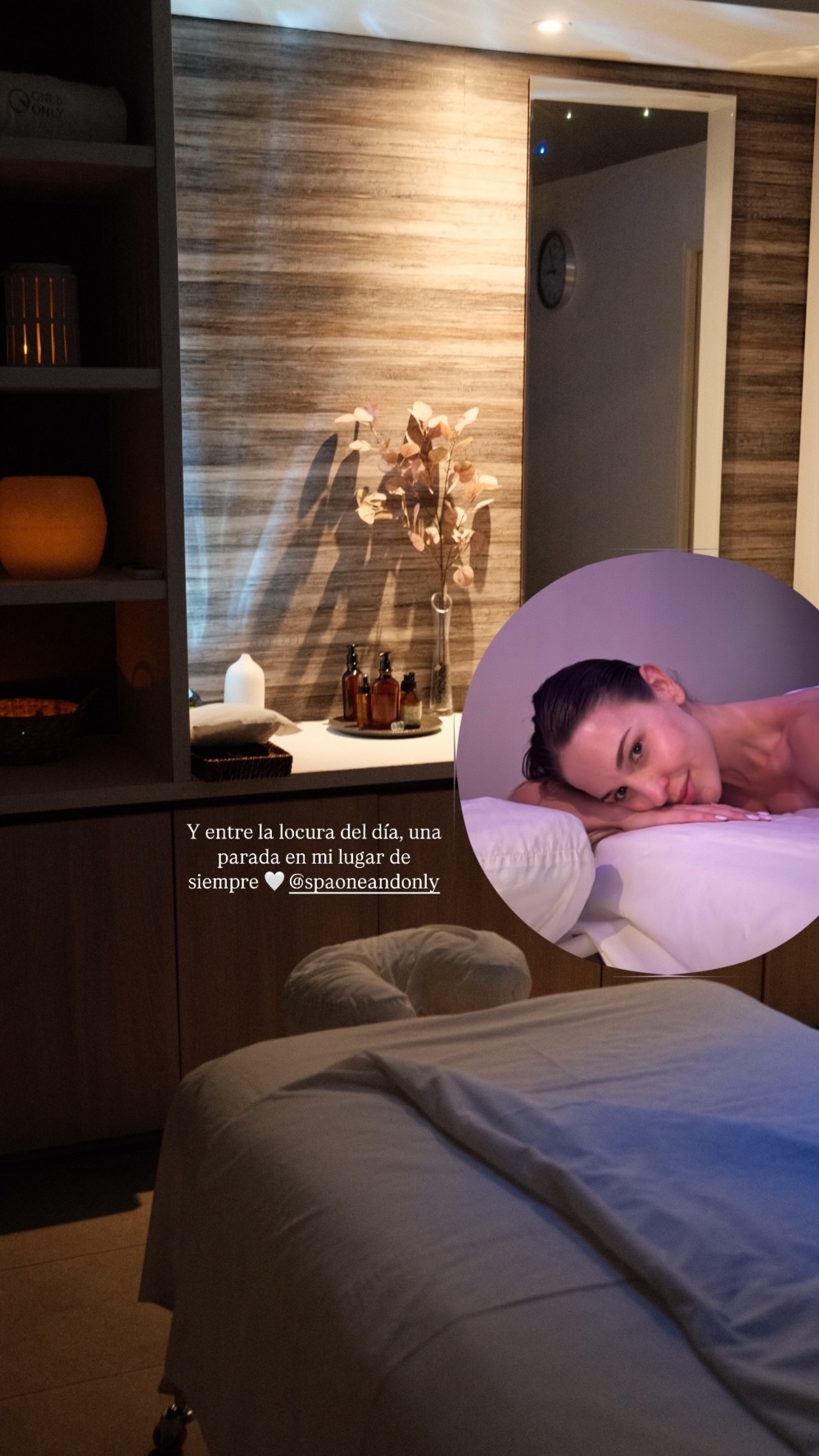 En sus historias de Instagram, la también escritora publicó una postal donde se muestra en un spa. “Y entre la locura del día, una parada en mi lugar de siempre”, escribió.