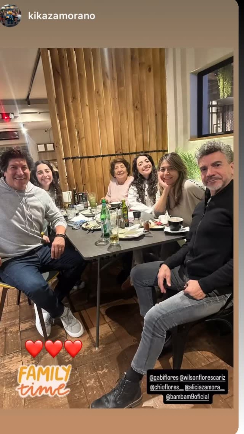 Posteriormente, "Bam Bam" compartió una foto que publicó Kika, en la que aparecen sonrientes su madre, hermana, sobrinas y cuñado después de haber disfrutado una comida.