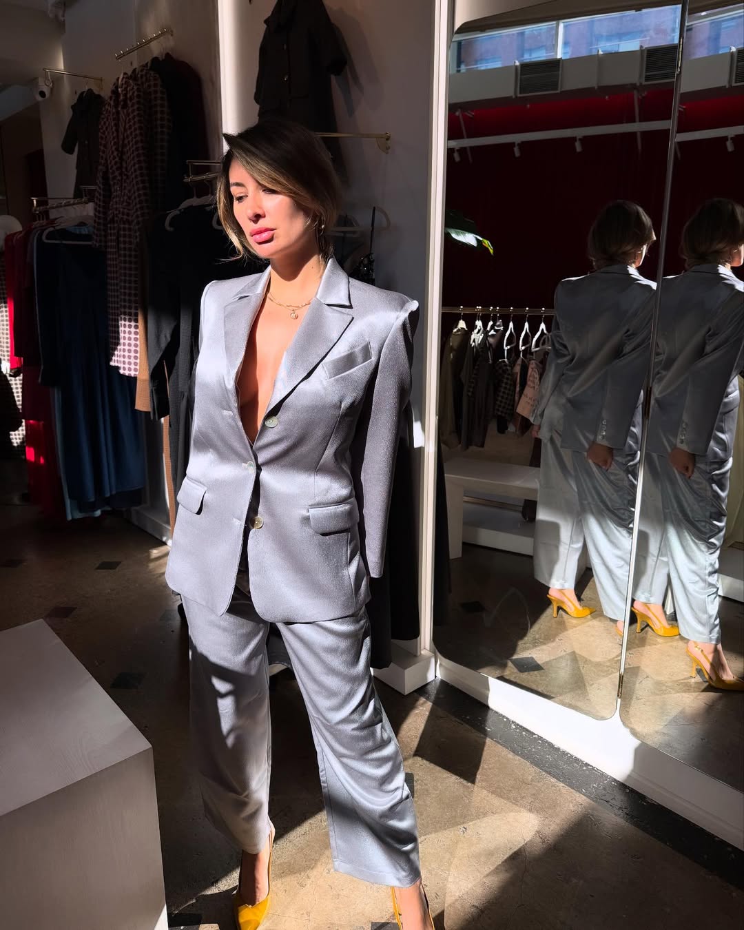 Camila Andrade tiene la versión satinada del conjunto de blazer