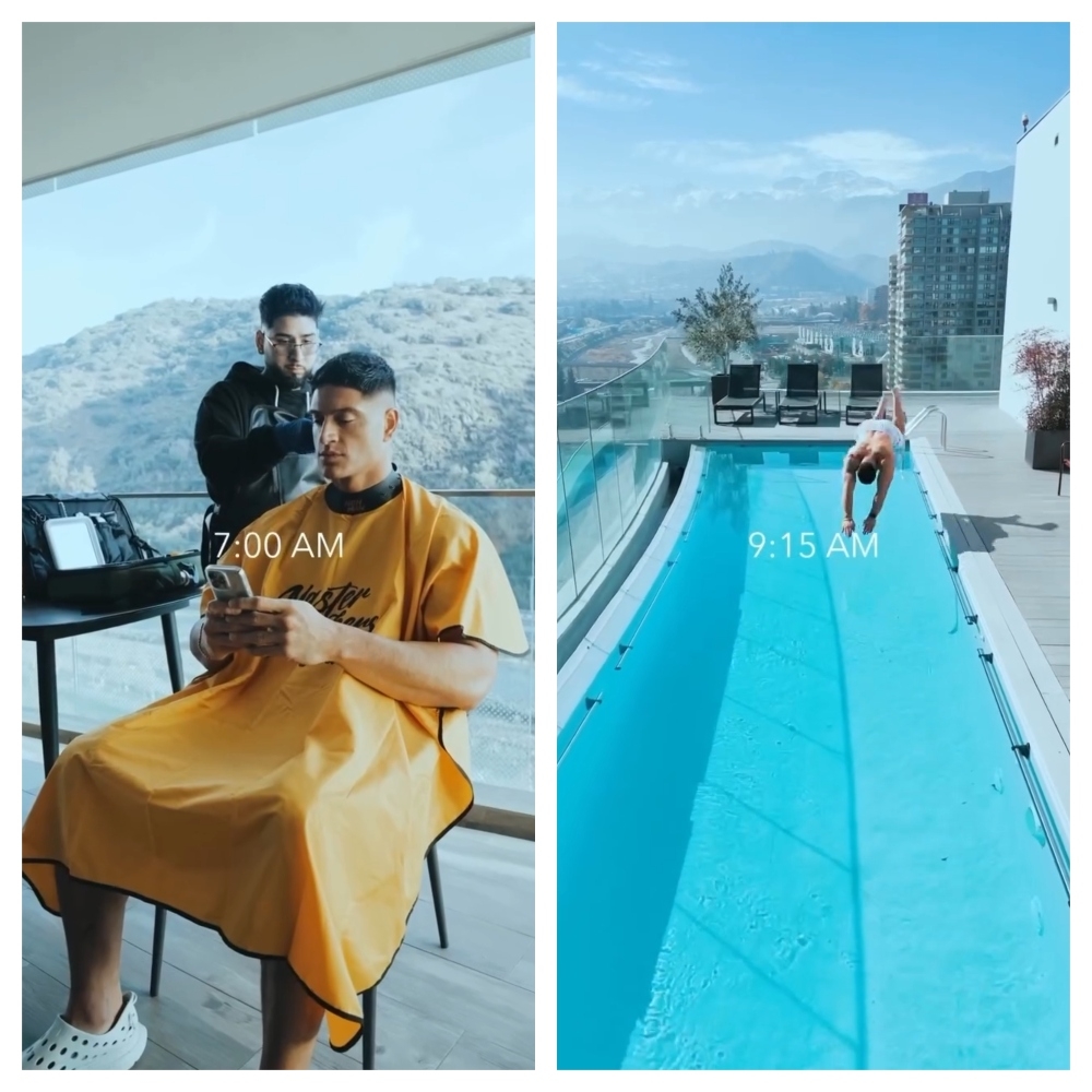 Como parte de una campaña publicitaria de relojes, Sammis detalló sus actividades en cada jornada, que inicia a las 6:30 am con una ducha y corte de cabello, para continuar desde las 8:00 am con un breve entrenamiento y un baño en su piscina.