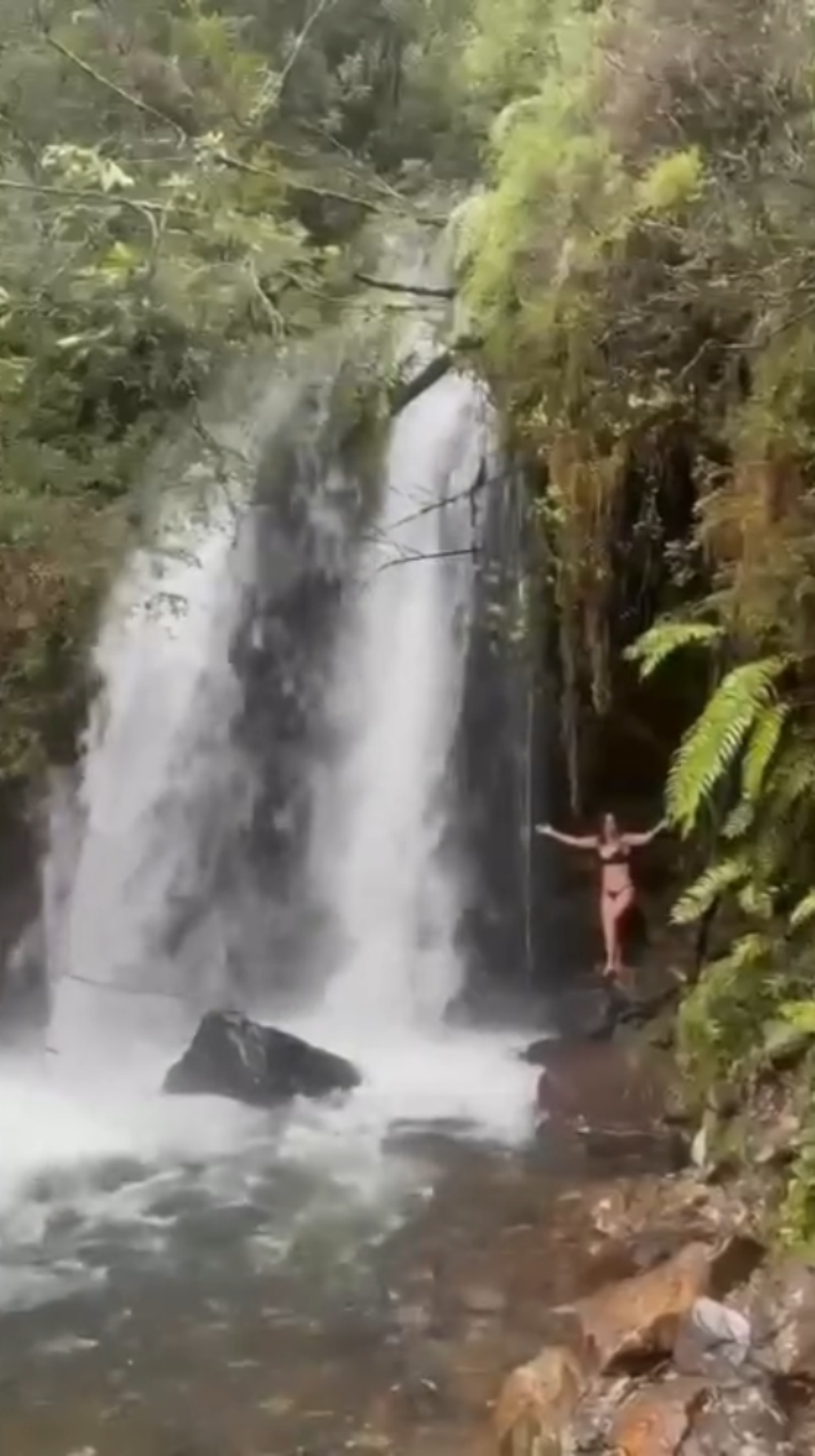 “Busca lo insoportable y sopórtalo. La vida está en los límites. El frío también quema y cala los huesos”, escribió en la descripción de un video en el que se aprecia a la presentadora de televisión acercándose a una cascada, para luego posar y darse un baño en la gélida corriente.