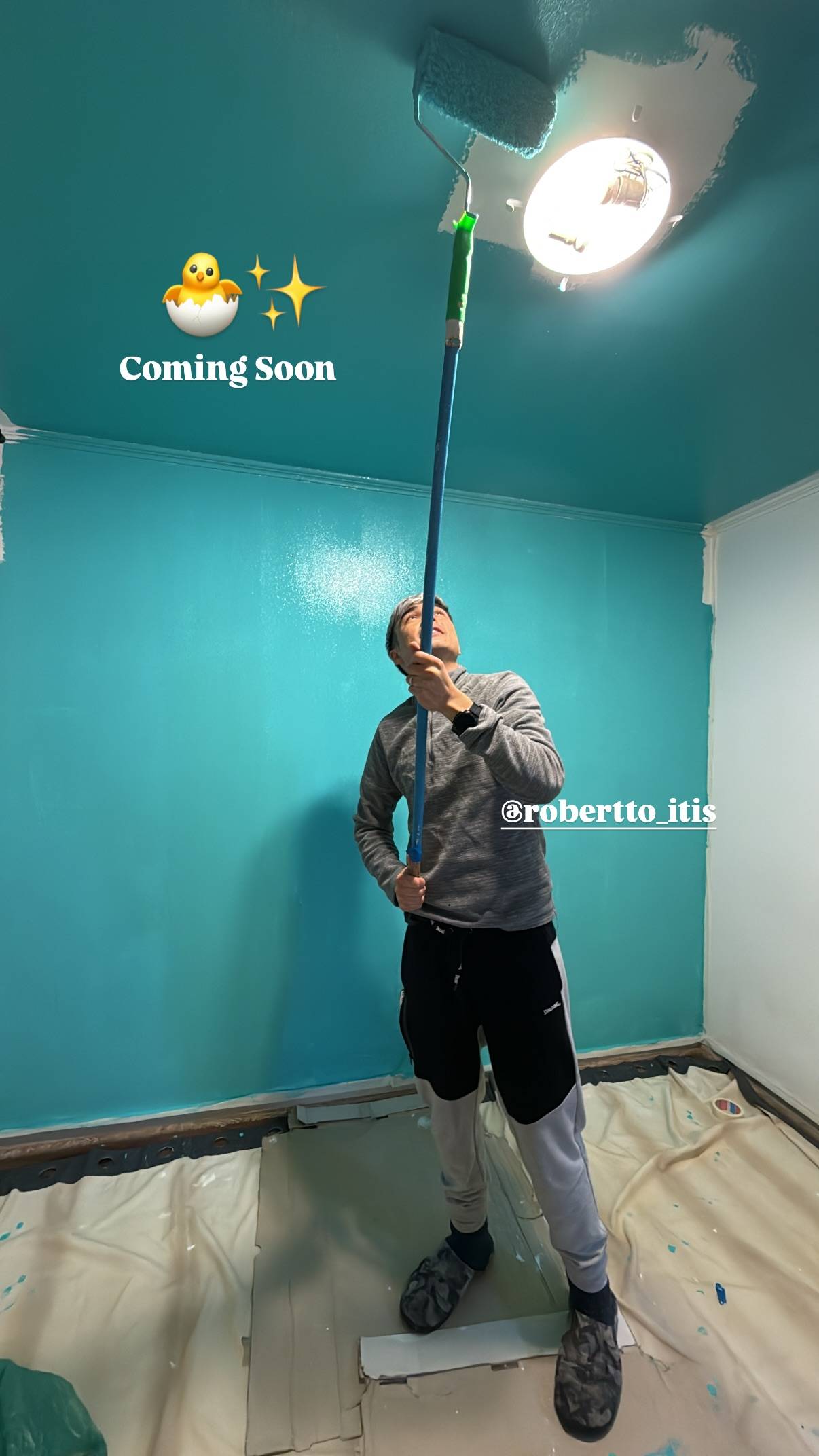 Christell publicó en sus historias de Instagram una foto de su esposo pintando una habitación de un color turquesa intenso. “Coming soon” (próximamente), escribió en la postal junto al emoji de un pollito recién nacido.