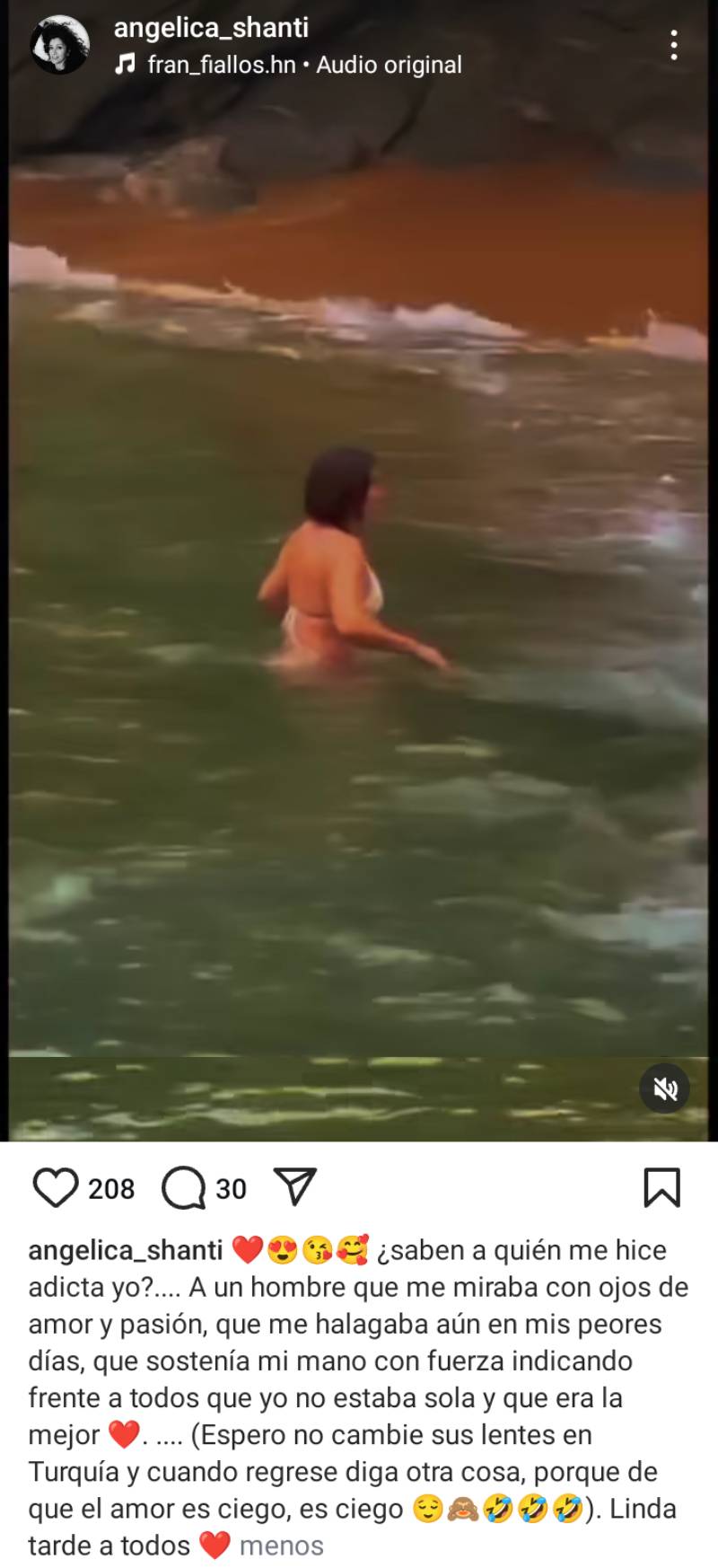 La separación le ha permitido a Angélica reflexionar sobre su relación y alimentar algunos temores, como que deje de mirarla con “ojos de amor y pasión” cuando regrese de su viaje. “Espero no cambie sus lentes en Turquía y cuando regrese diga otra cosa, porque de que el amor es ciego, es ciego”, dijo en un post de Instagram.