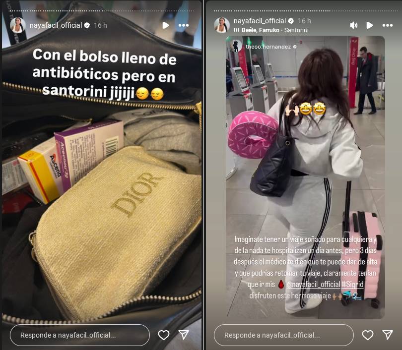 "Imagínate tener un viaje soñado para cualquiera, y de la nada te hospitalizan un día antes. Pero tres días después, tu médico te dice que te dará de alta y podrías retomar tu viaje", escribió en una historia.