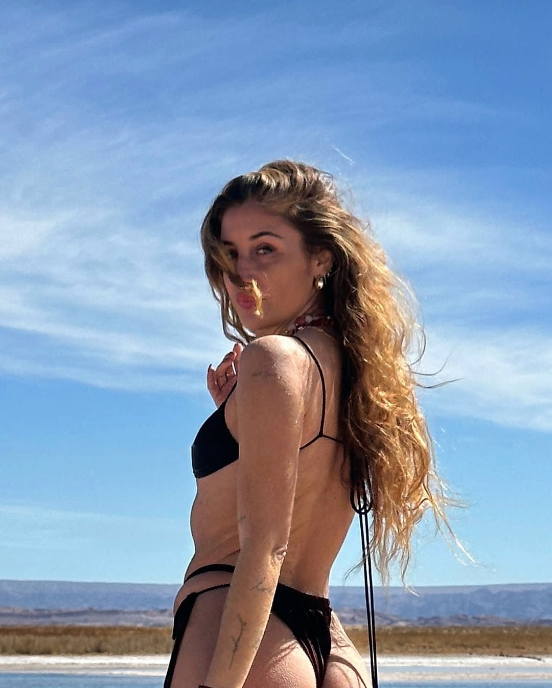 Daniela Castro enamora con outfits de playa desde San Pedro de Atacama: Bikinis y pantalón de pana