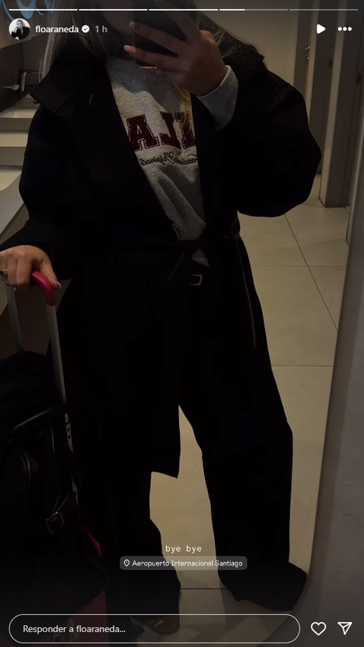 "Bye, bye", escribió en la historia sobre la pegatina de su ubicación, la cual daba luces que estaba en el Aeropuerto Internacional Santiago.