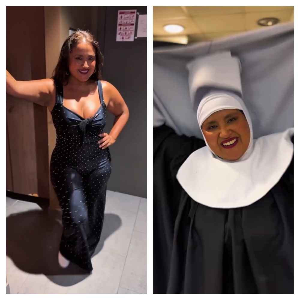 “Y esta soy yo, después del show”, declaró entre risas mientras se quitaba su traje negro de monja, que apenas dejaba ver su rostro. Mientras se despojaba con dificultad de la complicada vestimenta, Pamela Leiva dejó ver su cansancio tras una intensa rutina.