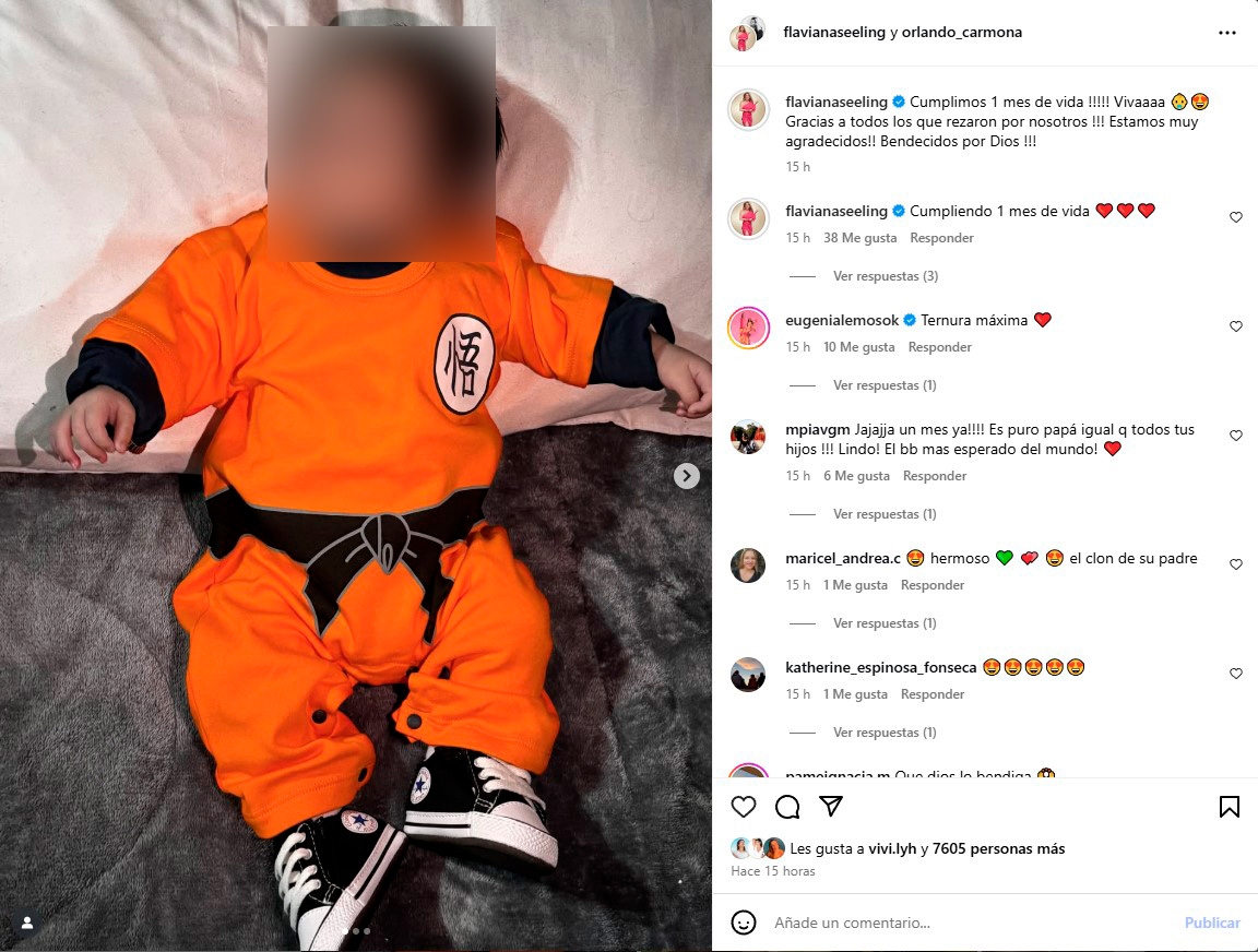 Por medio de sus redes sociales, Flaviana Seeling festejó el primer mes de vida de su hijo menor, al cual llamó Vicente Orlando.
