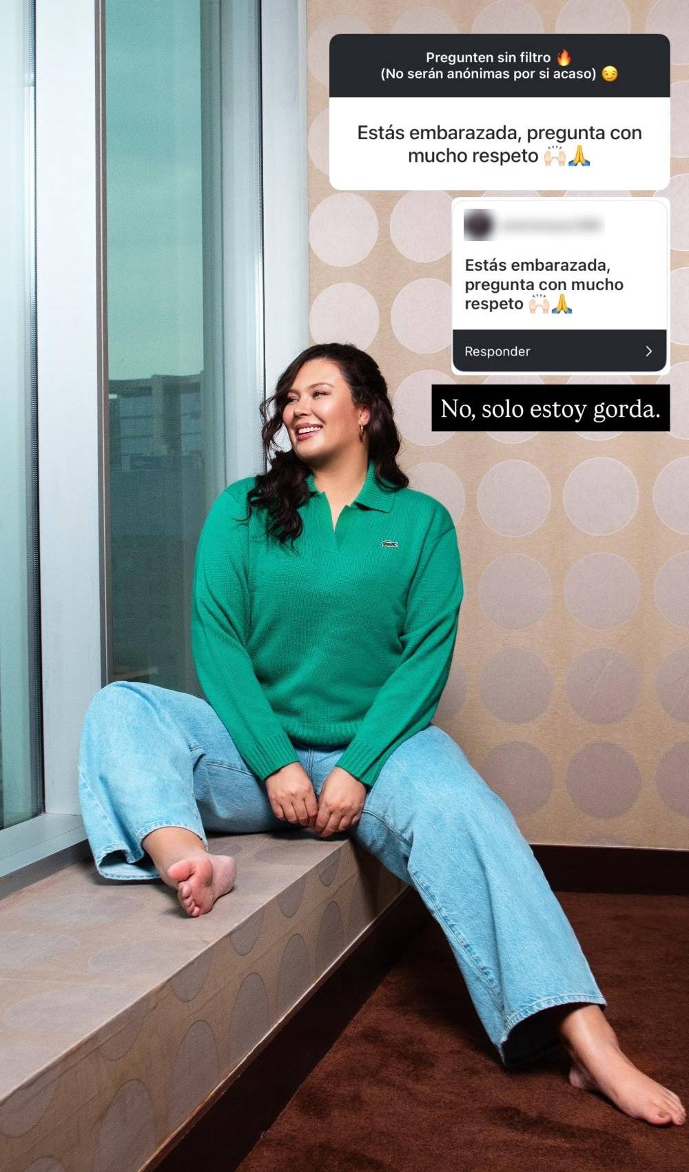 “¿Estás embarazada? Pregunto con mucho respeto”, escribió la internauta en una dinámica de Instagram, a lo cual Michelle respondió con una foto en la que escribió tajantemente: “No, solo estoy gorda”.