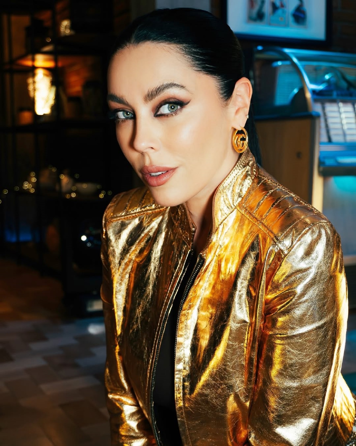 Por ser un conjunto que se puede usar a cualquier hora, Daniela Aránguiz lo completó con una tercera prenda que le dio ese toque glamoroso. Optó por combinarlo con un top de malla dorada, un tejido con aspecto metálico que lo elevó de nivel.