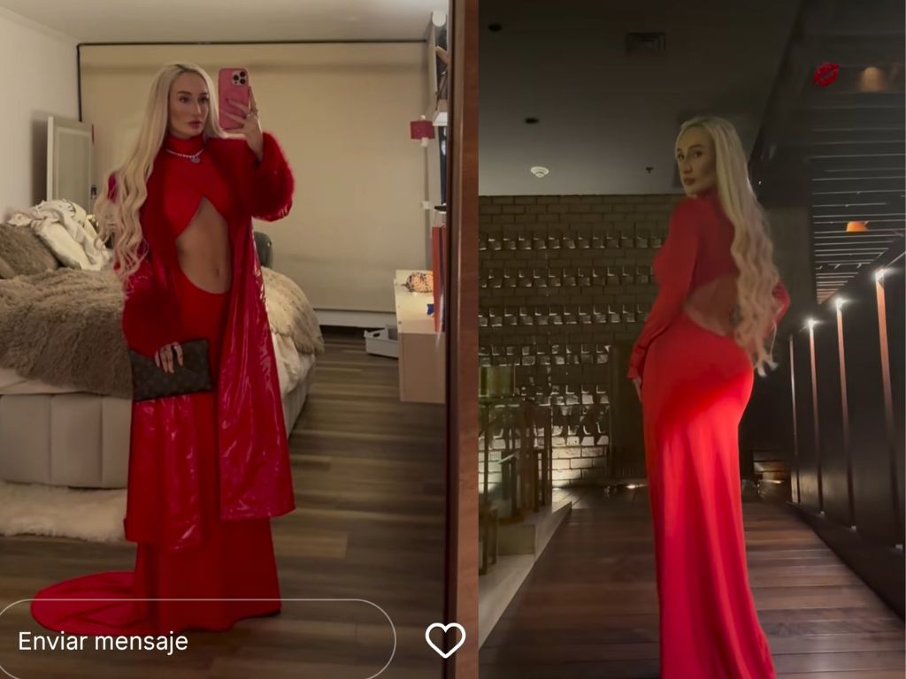Las celebridades no dudan en lucir el tono que refleja pasión y amor, como el rojo puro que llevó Fran Maira en su outfit de cumpleaños. La tendencia cut-out marcó su ceñido vestido de cola larga con destacada abertura en la zona del abdomen, creando una forma triangular debajo del busto.