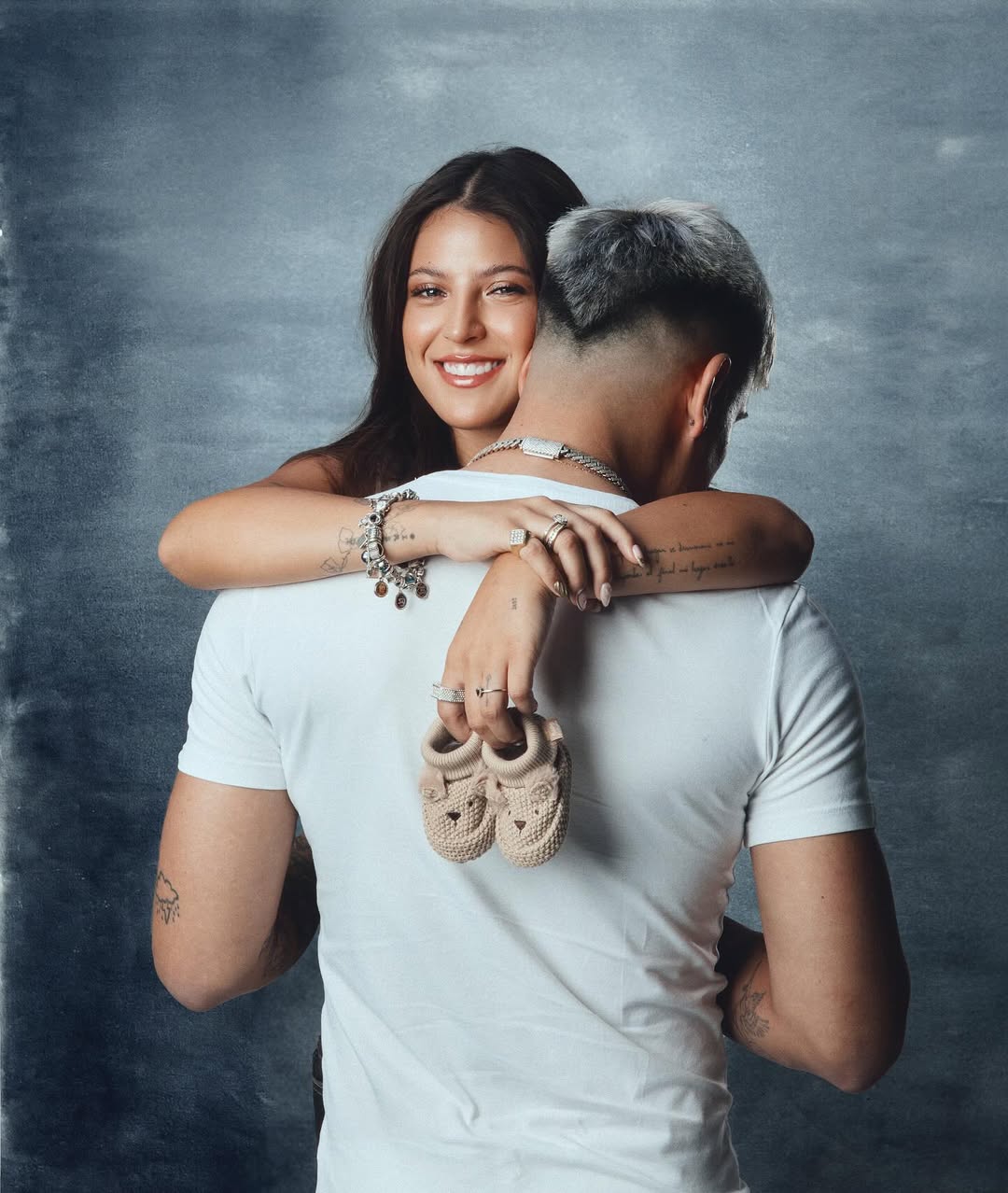 Fue a través de redes sociales que la influencer y el cantante contaron la linda noticia y publicaron una tierna sesión de fotos donde posaron con la ecografía y un par de zapatos pequeños: "Somos tres".