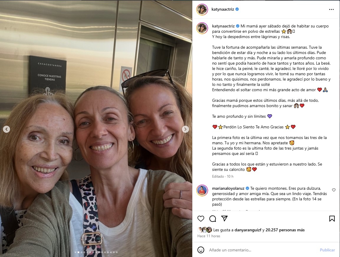 Luego, la intérprete agradeció la oportunidad que tuvo de pasar los últimos días juntas: "Tuve la fortuna de acompañarla las últimas semanas. Tuve la bendición de estar día y noche a su lado los últimos días. Pude hablarle de tanto y más. Pude mirarla y amarla profundo como no sentí que podía hacerlo de hace tantos y tantos años".