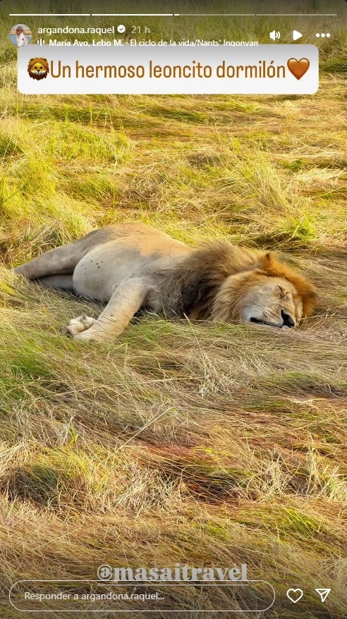 Sin embargo, lo más interesante vino cuando Raquel Argandoña pudo ver desde muy cerca a un león que estaba descansando.