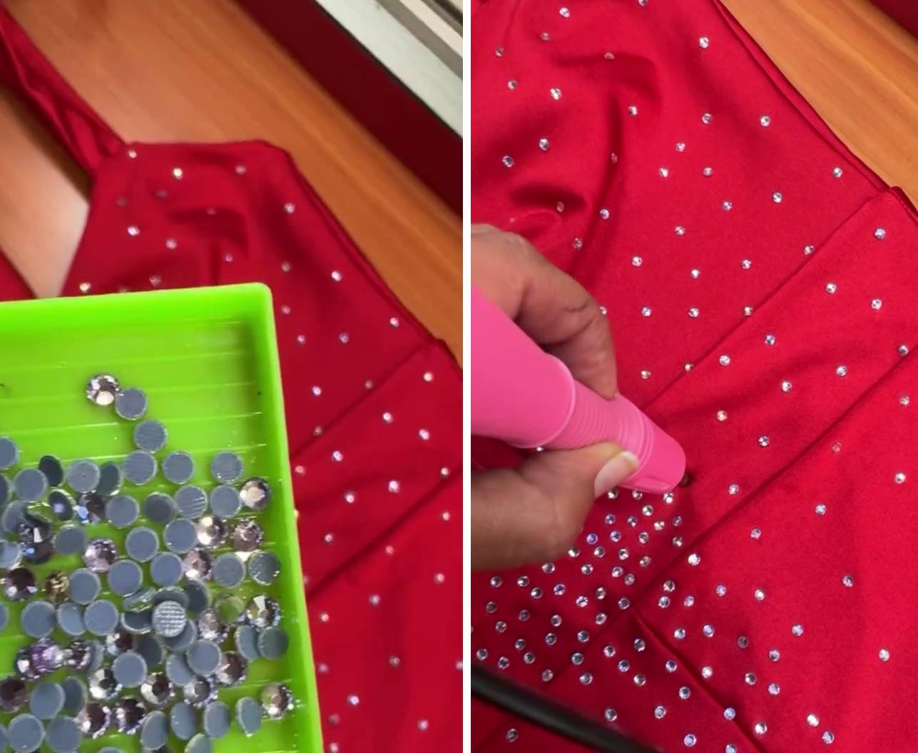 Con creatividad y mucha paciencia, Pamela Leiva personalizó su vestuario horas antes de su show en Rancagua. La humorista regaló todo un tutorial al decorar su enterito rojo, una pieza que transformó en su totalidad al sumar un diseño en cristales.