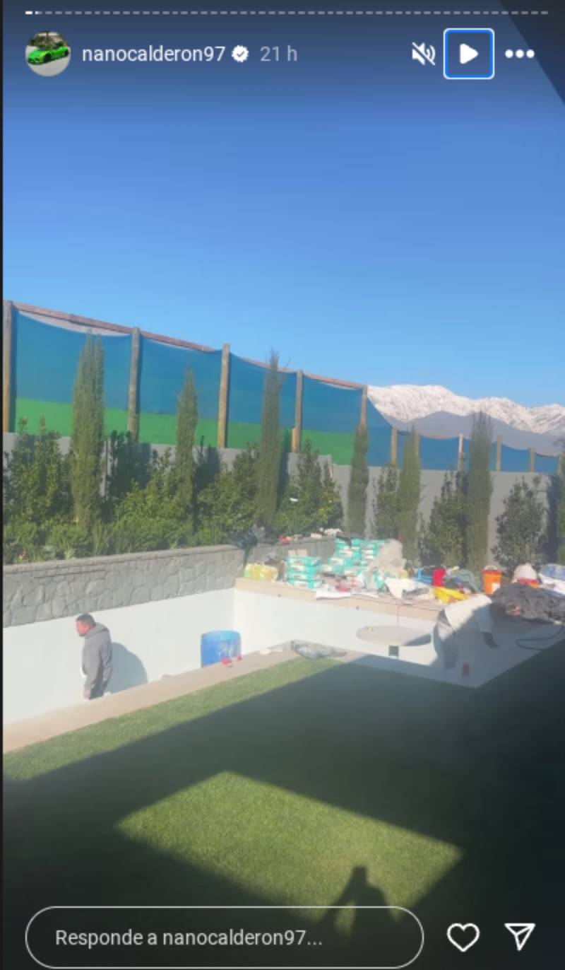 Calderón también compartió un video de la piscina, en el que se aprecia más de cerca a los obreros, con los materiales en el fondo.