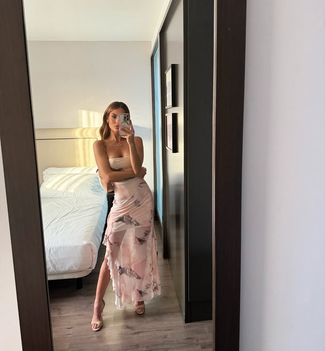 El verano español impone el uso de prendas ligeras y Gala Caldirola tomó un vestido bajo esa tendencia para una reunión de amigos. La influencer eligió los tonos nude en un traje largo de inspiración romántica, con el que se vio elegante.