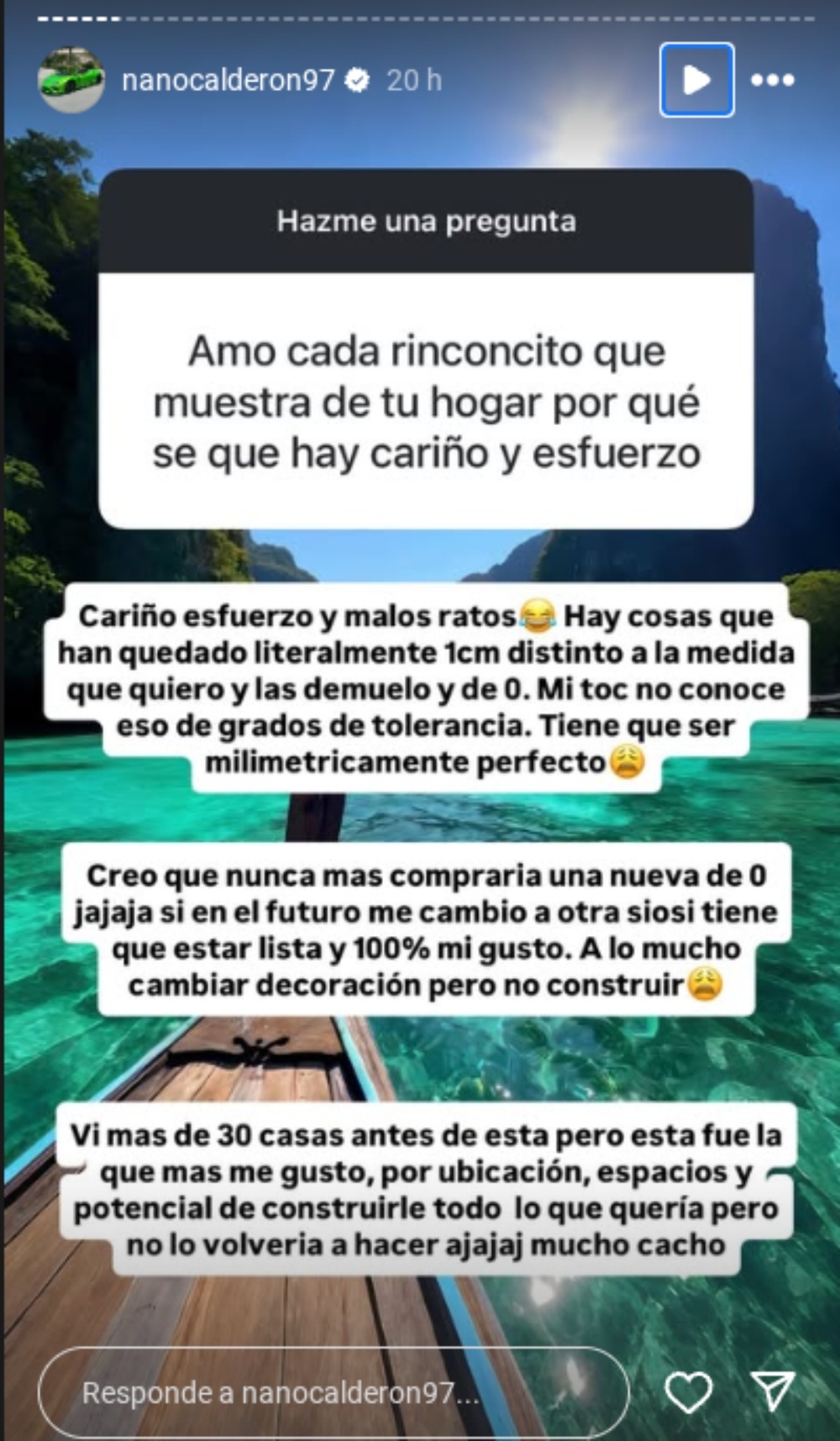 Durante una dinámica de Instagram, el joven de 28 años recibió numerosas preguntas por su vivienda, a las cuales respondió con sinceridad. Uno de sus seguidores comentó el esfuerzo que implica decorar una casa desde cero, algo que lo hizo reflexionar.