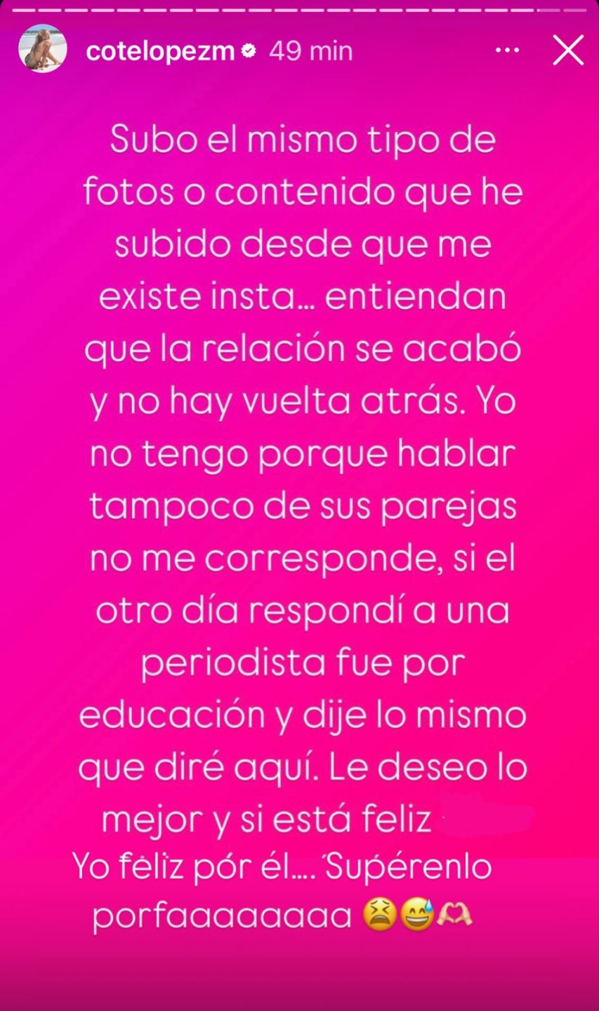 Coté López salió a aclarar los rumores que la vinculan con su exesposo, Luis "Mago" Jiménez, tras compartir en redes un fragmento de la canción "Se Puso Linda", de Karol G, que algunos interpretaron como una indirecta hacia él.