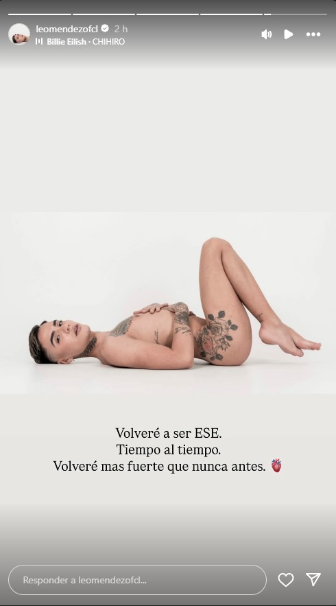 El joven publicó una foto en sus historias de Instagram, donde posó sin ropa y de manera artística, fiel a su estilo.