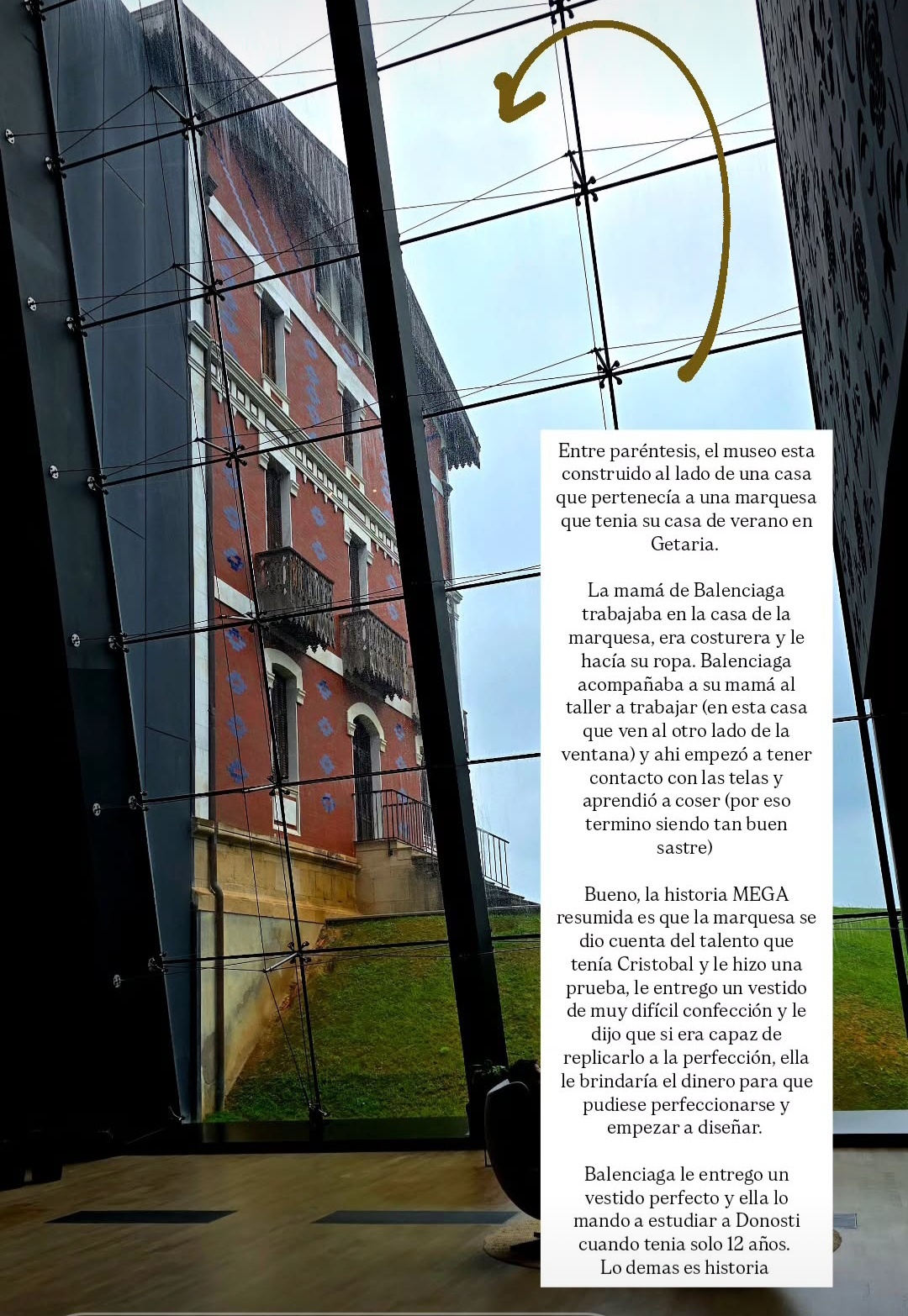 Calderón dio un tour por el museo y maravillada por la historia que relata cada pieza Balenciaga, resaltó la ubicación del edificio, el cual fue construido al lado del palacio Aldamar, donde residieron los marqueses mentores que ayudaron a que la carrera del diseñador surgiera con éxito.
