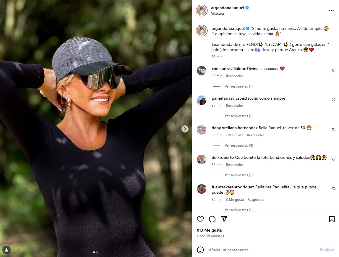 Rápidamente, el posteo se llenó de comentarios positivos hacia la influencer: "Espectacular como siempre", "Bella Raquel, te vez de 30", "Hermosa como siempre, inteligente como pocas".