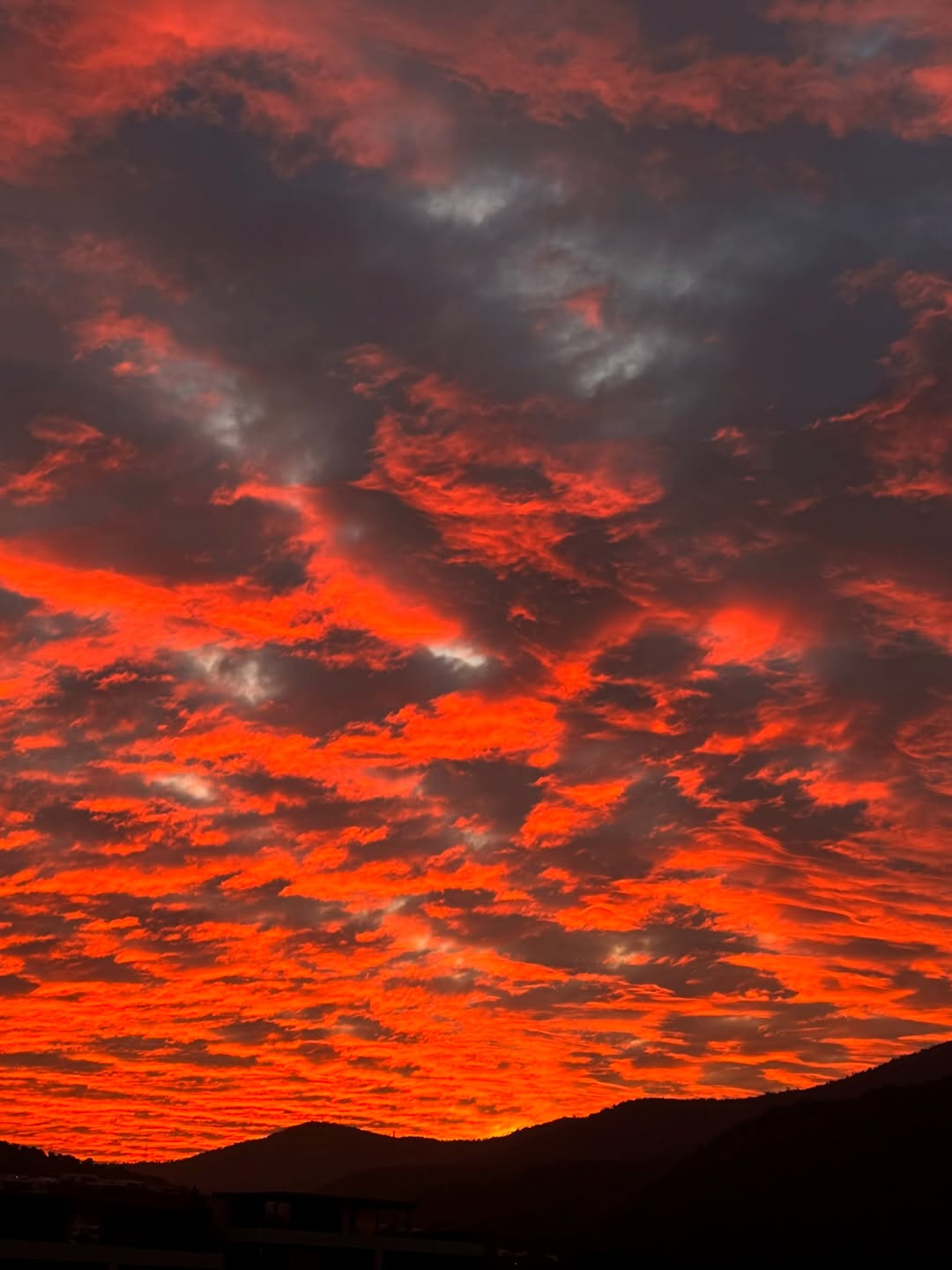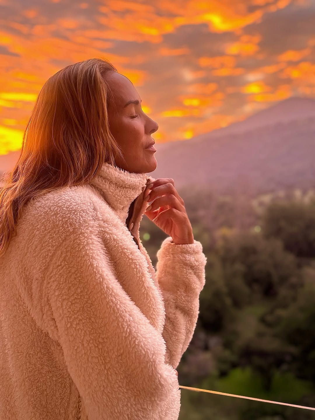 La presentadora de televisión guardó en su memoria una postal que nunca olvidará y que solo puede ser observada en la temporada de otoño-invierno, cuando inicia el atardecer y el sol va descendiendo hacia el horizonte y brinda una explosión de colores cálidos que culminan en un paisaje bañado en tonos naranjas.