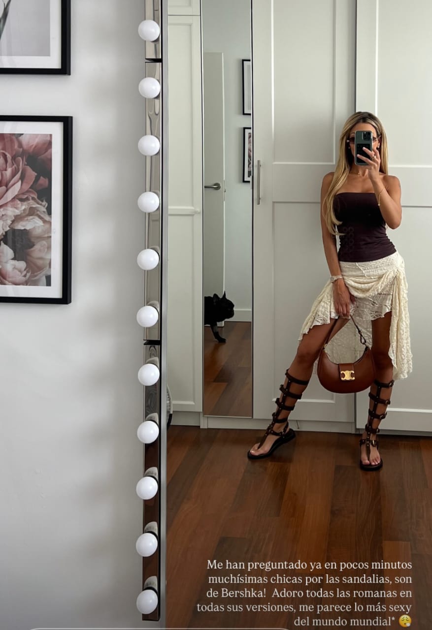“Me han preguntado ya en pocos minutos, muchísimas chicas por las sandalias, son de Bershka”, explicó la novia de Facundo González al revelar el dato de la marca y presentarlas en todo su esplendor.