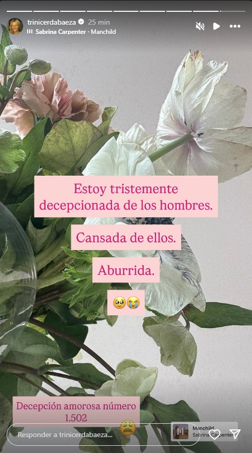 "Estoy tristemente decepcionada de los hombres": El enigmático desahogo amoroso de Trini Cerda