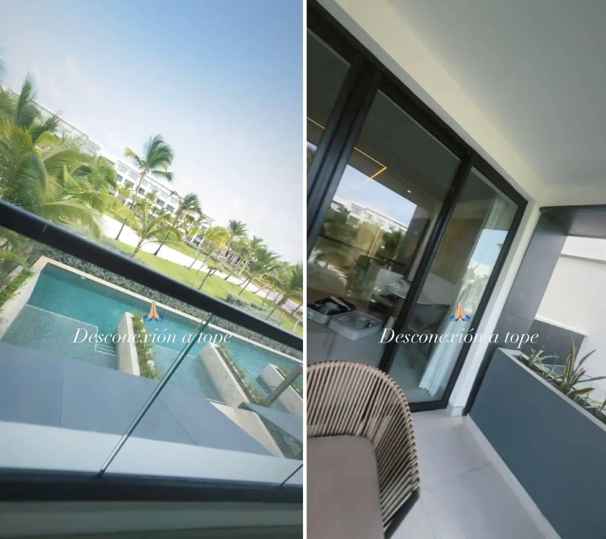 La pareja se hospeda en uno de los lujosos complejos hoteleros de la paradisíaca isla. En una espaciosa habitación que Raimundo Cerda dejó ver a través de sus historias de Instagram. En primer lugar mostró la terraza y su imponente vista al área de piscinas.