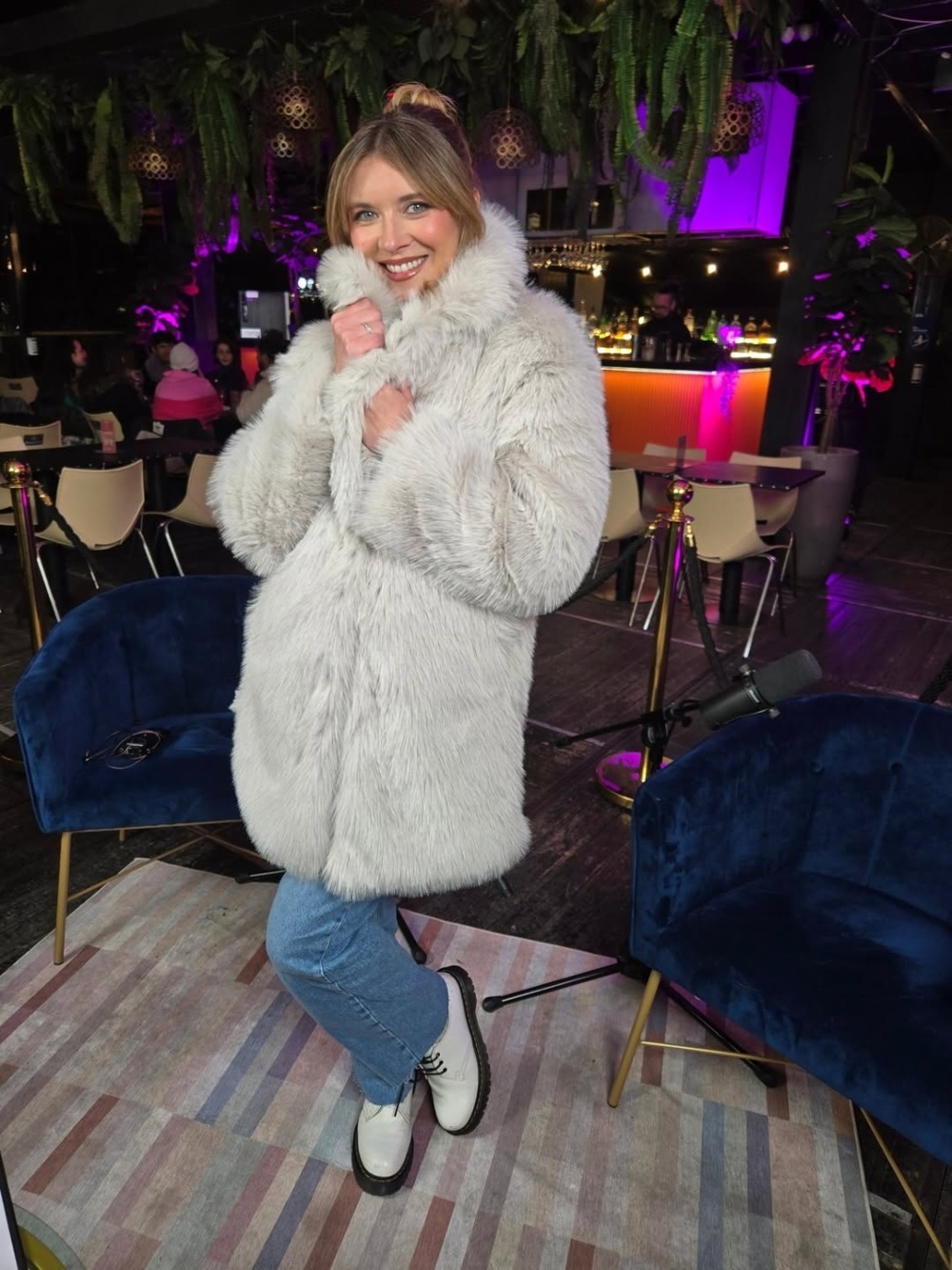 La animadora publicó en su cuenta de Instagram una serie de postales donde posa sonriente, vestida con combinaciones de jeans, botas y elegantes abrigos peludos.