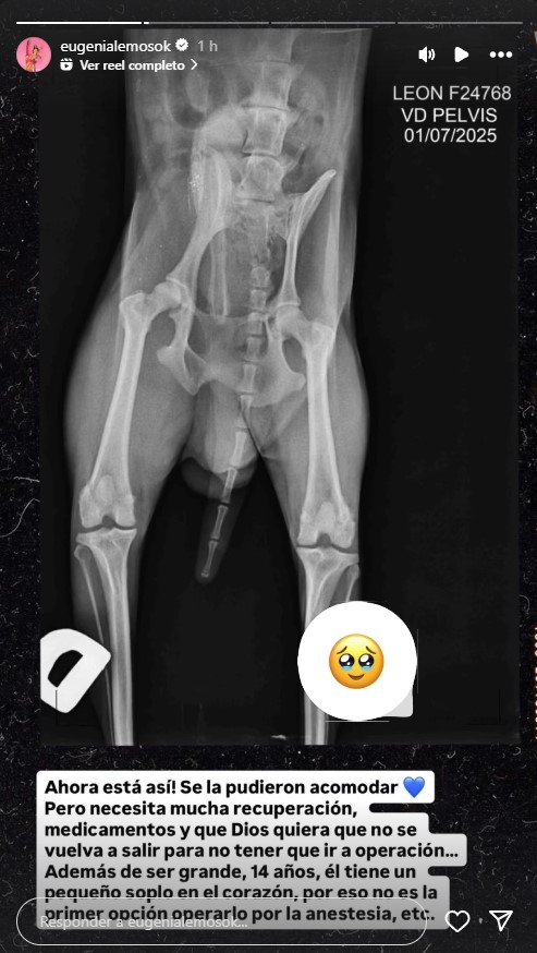 Posteriormente, Eugenia Lemos mostró un video donde su mascota ya se ve un poco más recuperada, pero que igualmente necesitará varios cuidados.