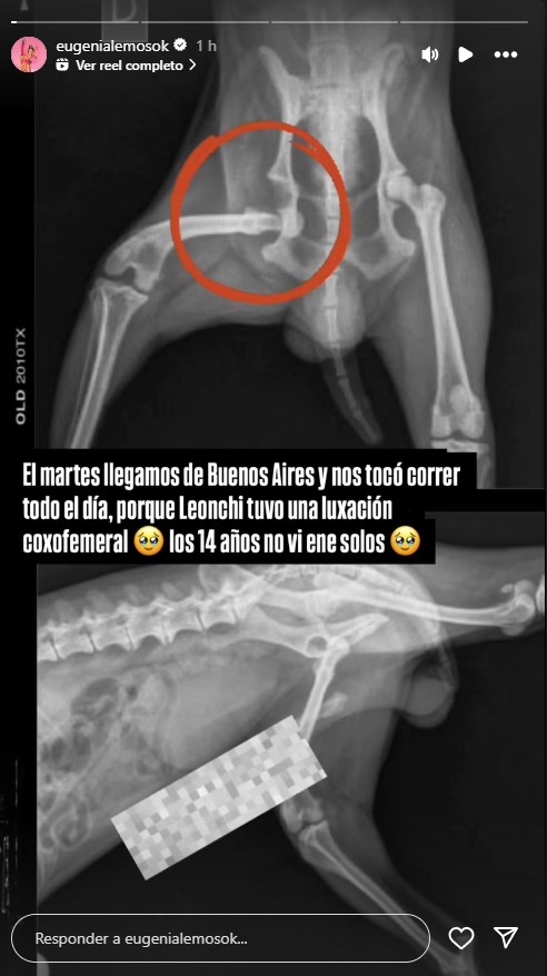 A través de sus redes sociales, Eugenia Lemos les contó a sus seguidores que su mascota sufrió un grave problema de salud.