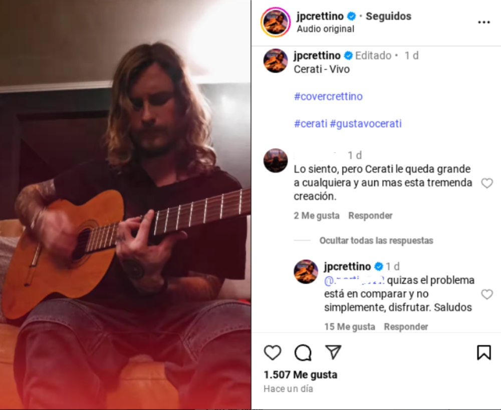 Sin embargo, otro expresó: “Lo siento, pero Cerati le queda grande a cualquiera, y aún más esta tremenda creación”. Ante esta crítica, Cretton prefirió reflexionar y responder: “Quizás el problema está en comparar, y no, simplemente, disfrutar”.