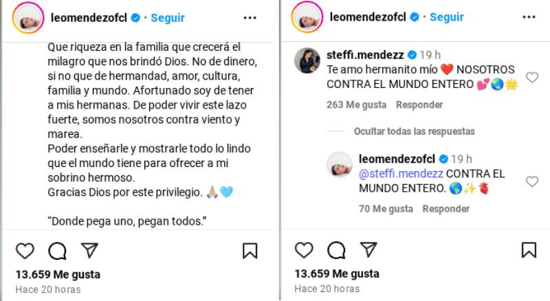 En respuesta a su post, Steffi escribió: “Te amo, hermanito mío. Nosotros contra el mundo entero”, una afirmación que Leo secundó en otro comentario.
