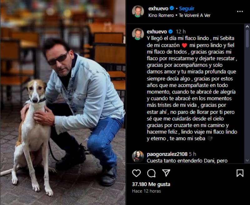 “Y llegó el día, mi flaco lindo, mi Sebita de mi corazón”, escribió Fuenzalida en su post, junto a un video que compila fotos de las experiencias que vivió con su galgo. “Gracias, mi flaco, por rescatarme y dejarte rescatar, gracias por acompañarnos y solo darnos amor”, resaltó.